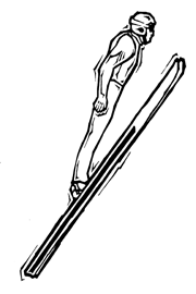 Have you ever skied over a large bump and become airborne? Why do you think that happens? Do you watch the ski jumpers during the Winter Olympics? How far do the jumpers go before landing? Why do they hold their skis and their bodies a certain way?