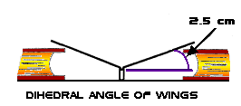 about 2.5 cm (1 in) higher than the middle to form a dihedral angle (see