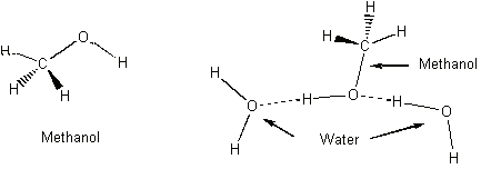 A molecule with these charged regions is called a polar molecule. Methanol (CH3OH) has a similar structure (see below), and the methanol molecules are very soluble in water because of the mutual attraction between the two polar molecules.